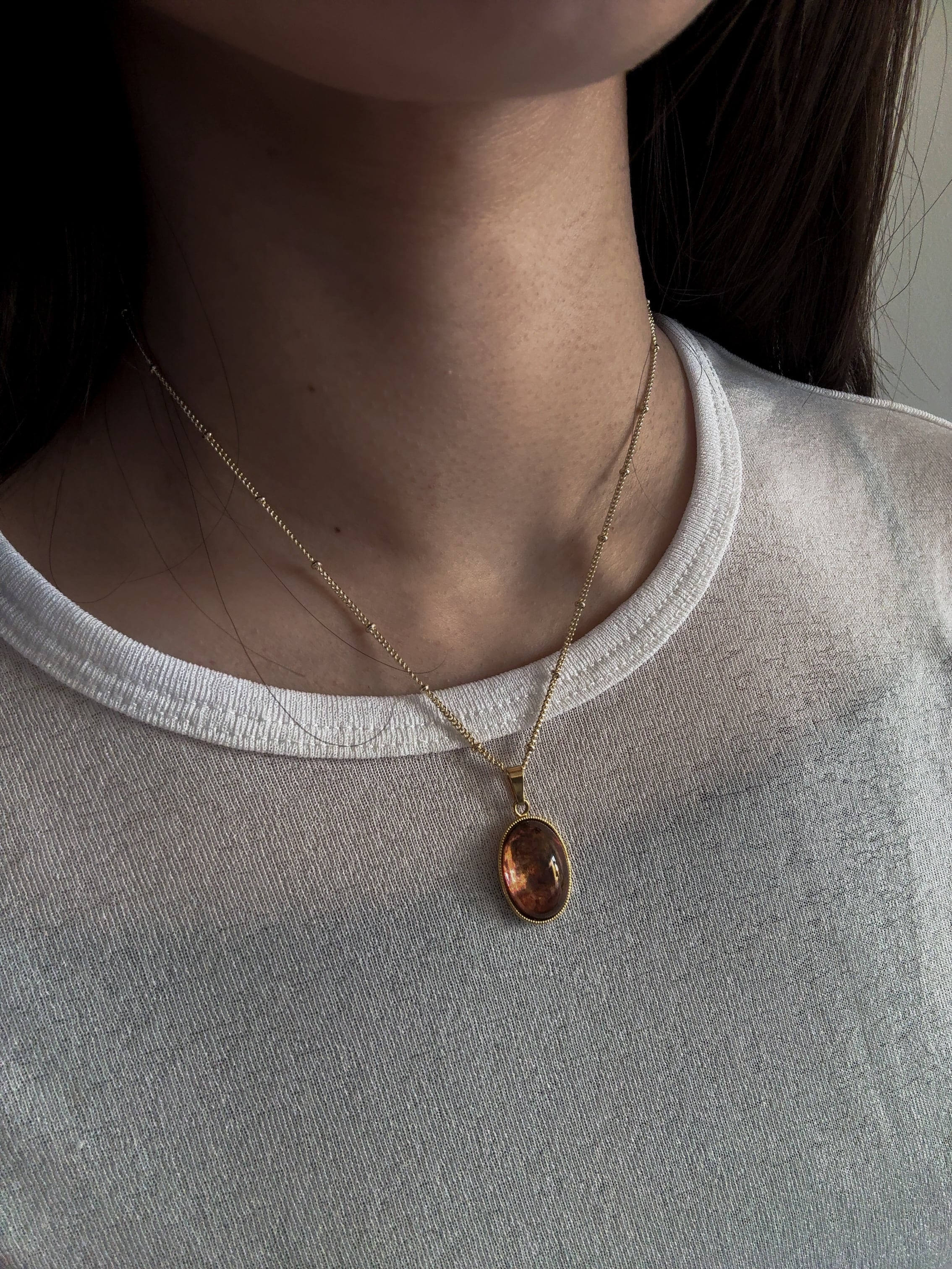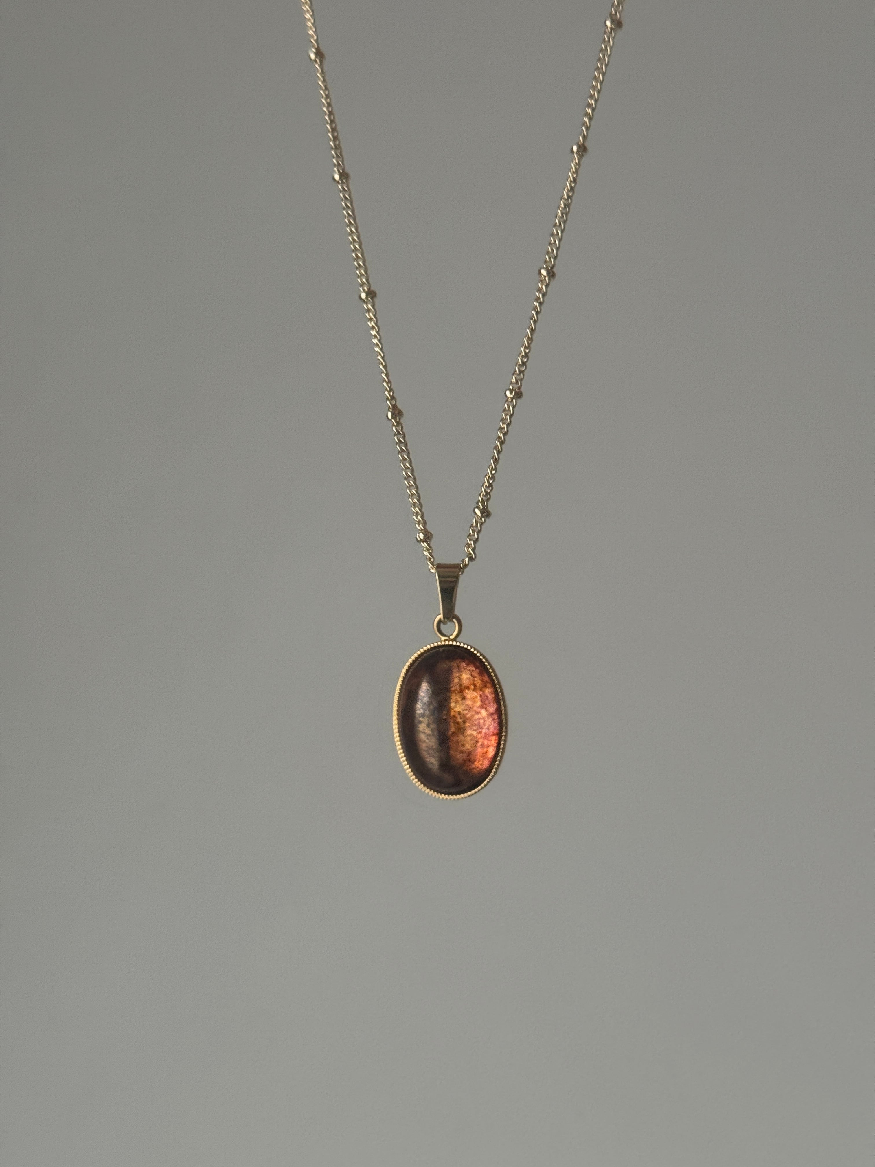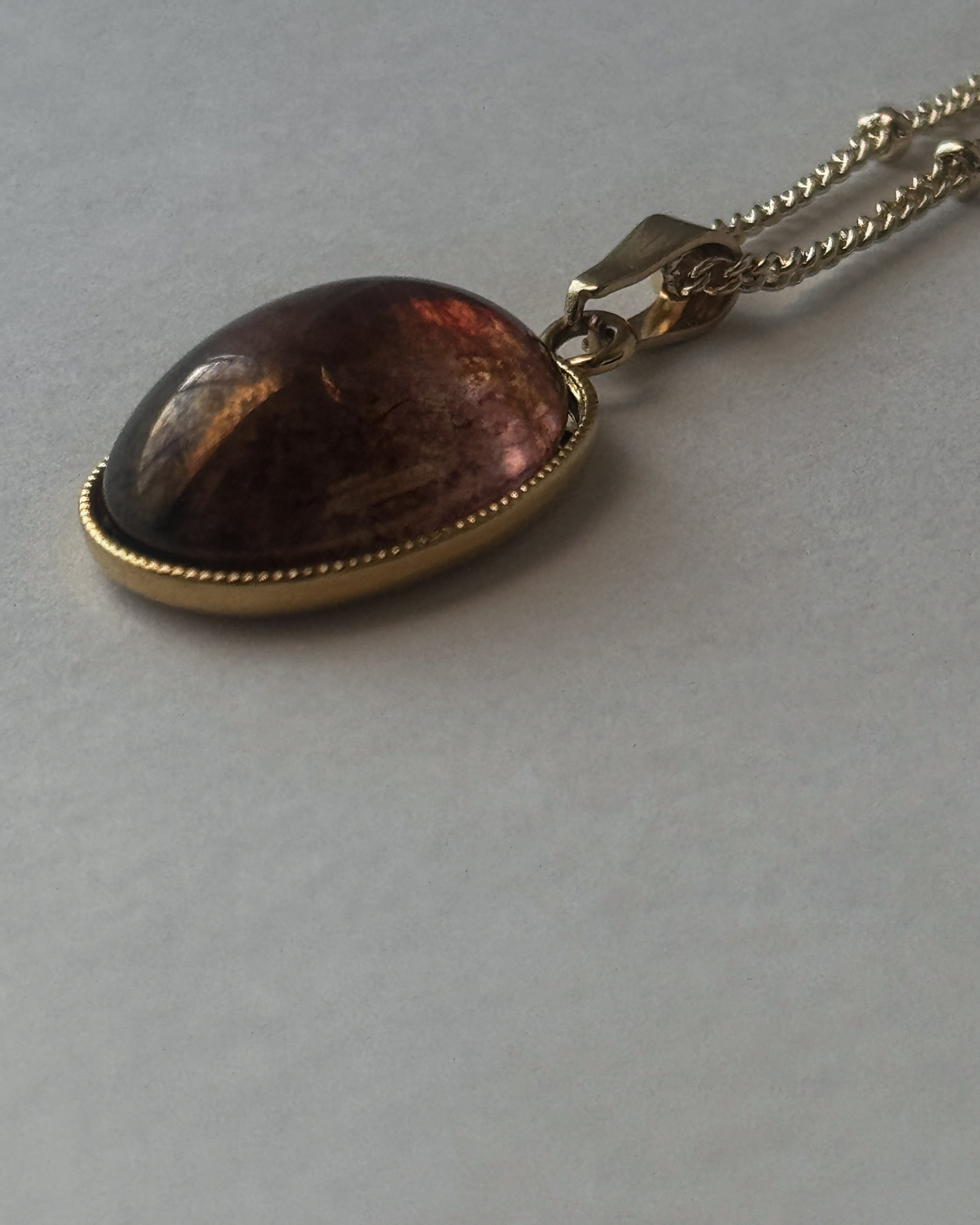 光の角度で色が揺れる、チェコラスターカボションのネックレス。