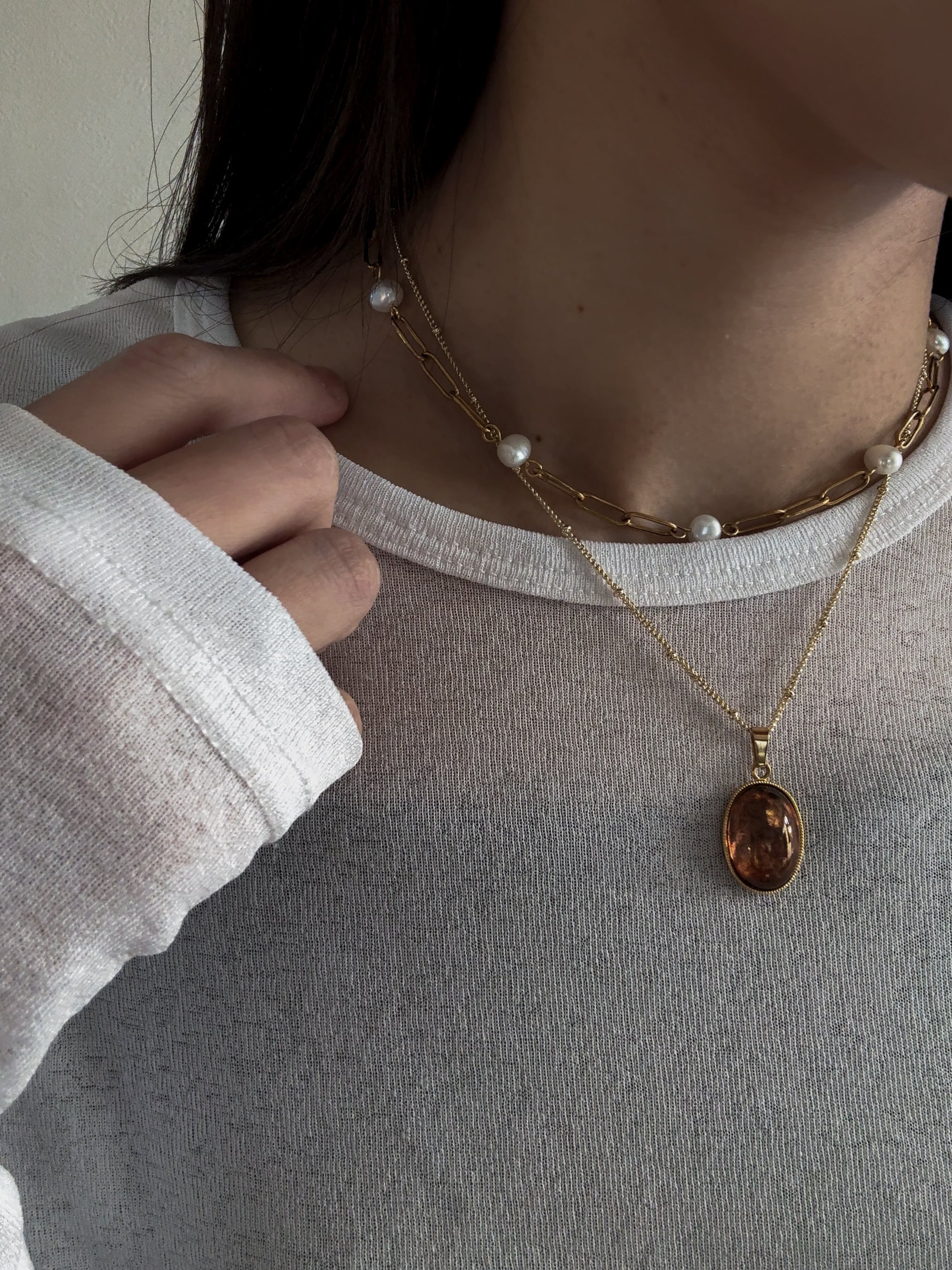 トパーズゴールドの温かみが、胸元に奥行きを生みます。