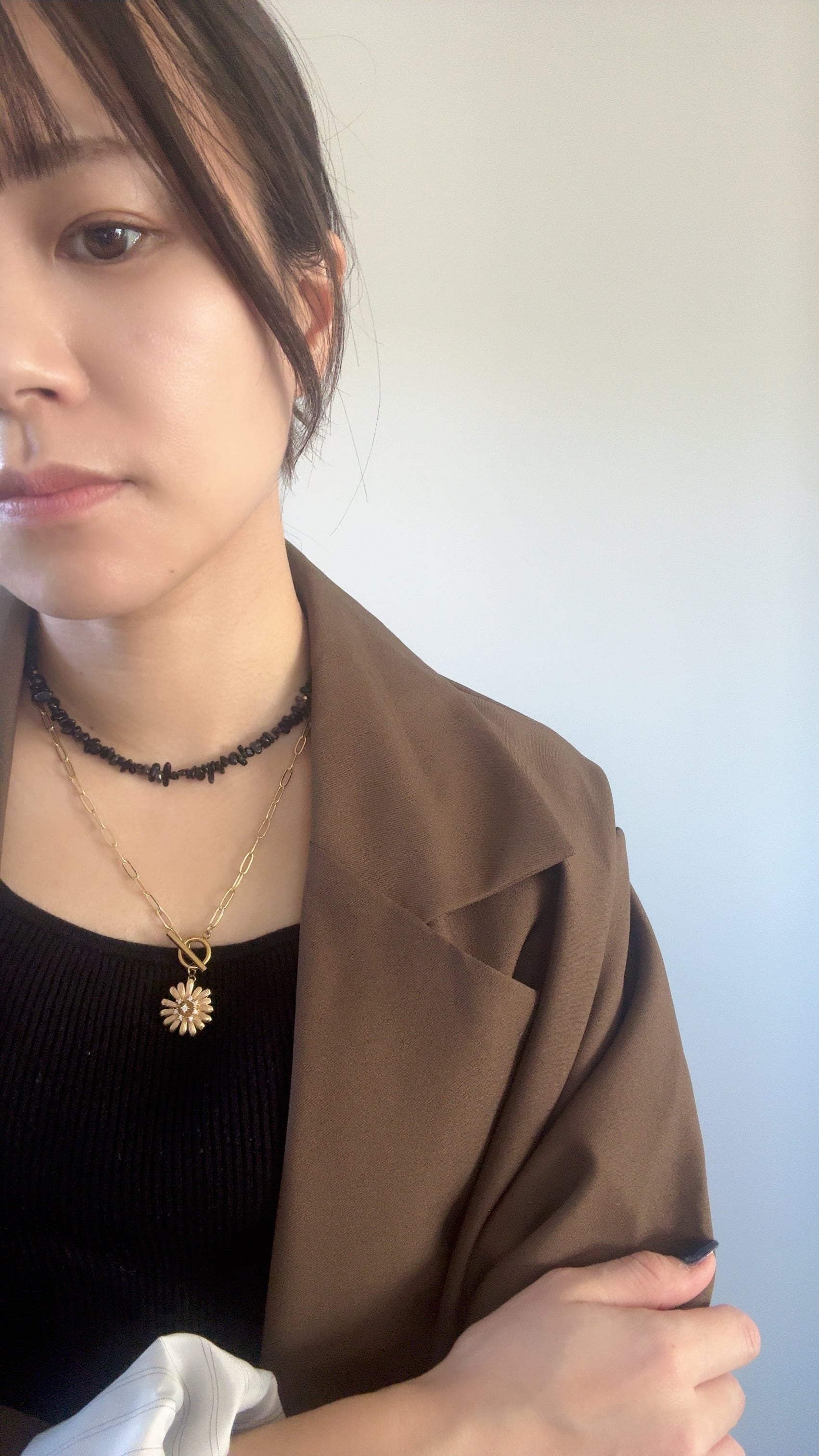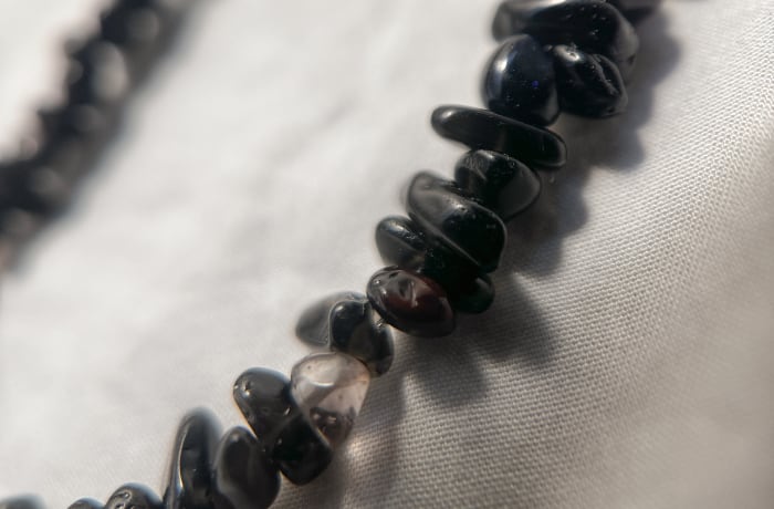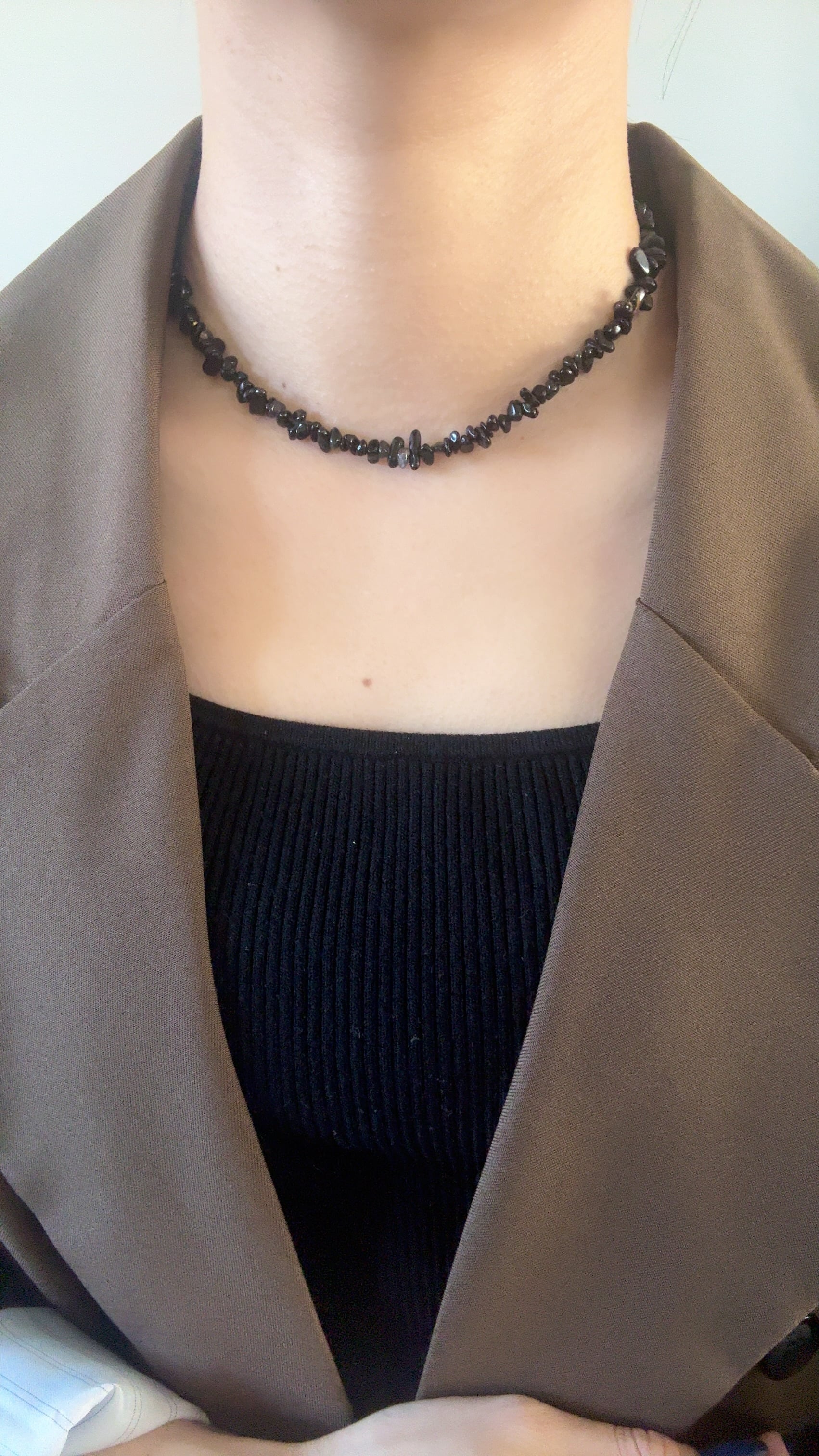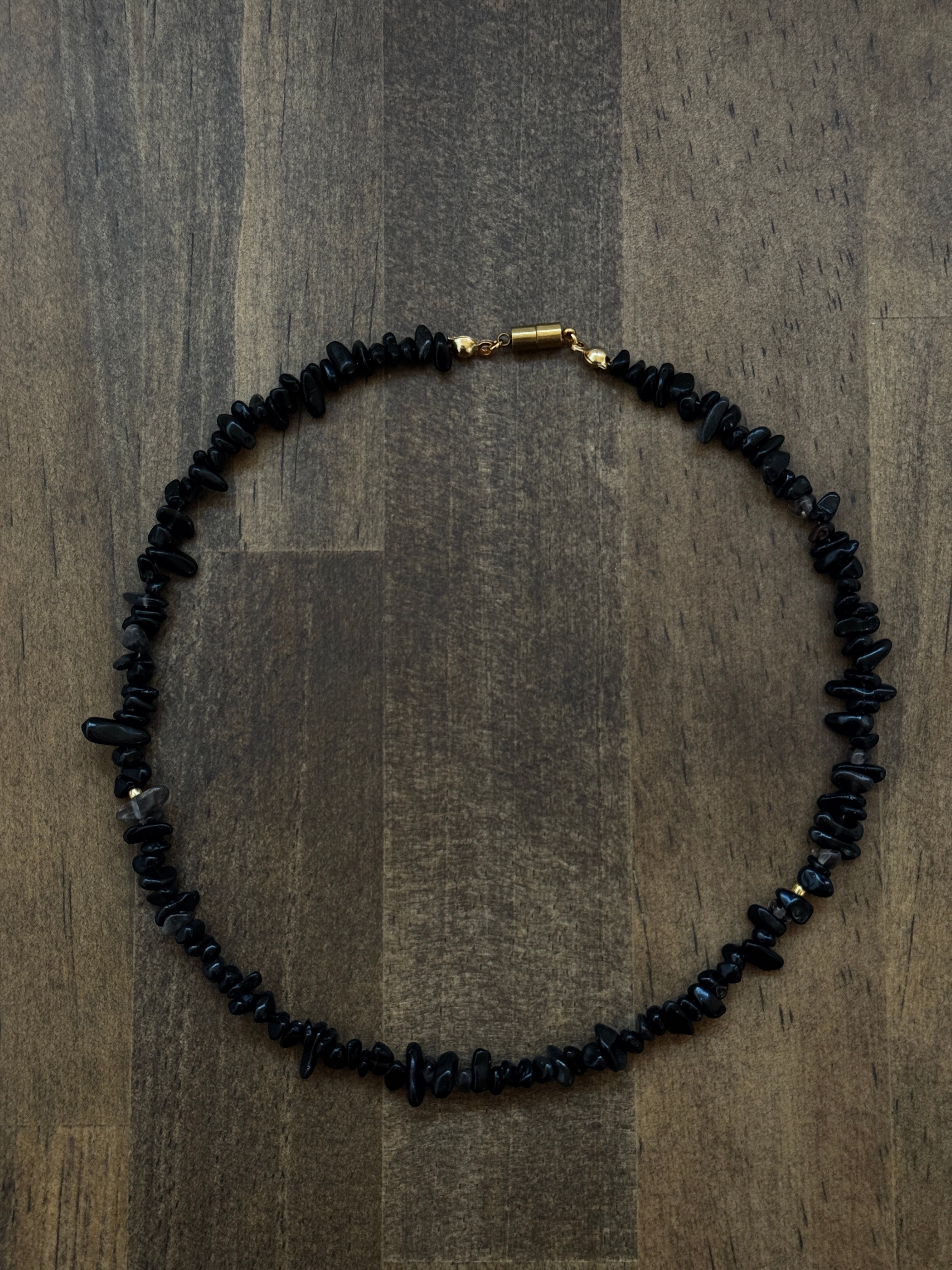 不揃いなオニキスのさざれ石のネックレス。